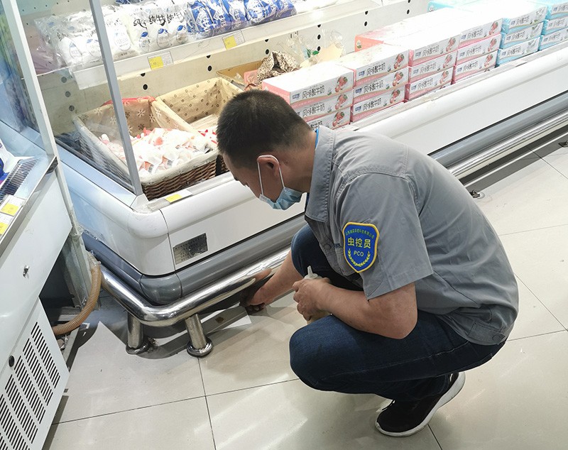 對超市內鼠類控制區,如熟食區、蔬果區、生鮮區、食品區等位置進行檢查,這些區域食品多,易招引鼠類,同時又要確保食品無危險,在方式方法上選擇以物理為主的防治。在貨架、機器底部布放物理粘鼠板,在比較潮濕的操作區隱蔽部位可設置連續多抓捕鼠器或雙開門鼠籠,以抓捕體型大的鼠種。